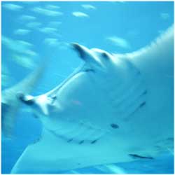 2003年5月,沖縄ダイビングツアー.一泊四日の強行スケージュール. 2日目はちゅらうみ水族館.期待していたがそれ以上の楽しさ. ダイバーなら誰もが一度は潜ってみたい!!あのマンタやジンベイザメが泳ぐ大水槽. 重いからということで明るいレンズを持ってこなかったことを後悔した.