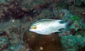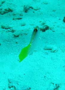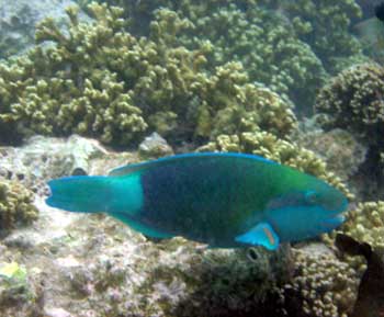 ナンヨウブダイ。夜はゼリー状の膜の中で眠るそう。ナイトダイブで見たかった! |