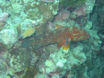 ユカタハタ(たぶん)を掃除してあげている小さなホンソメワケベラ。 |